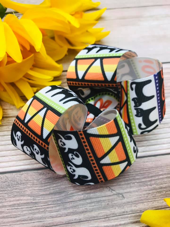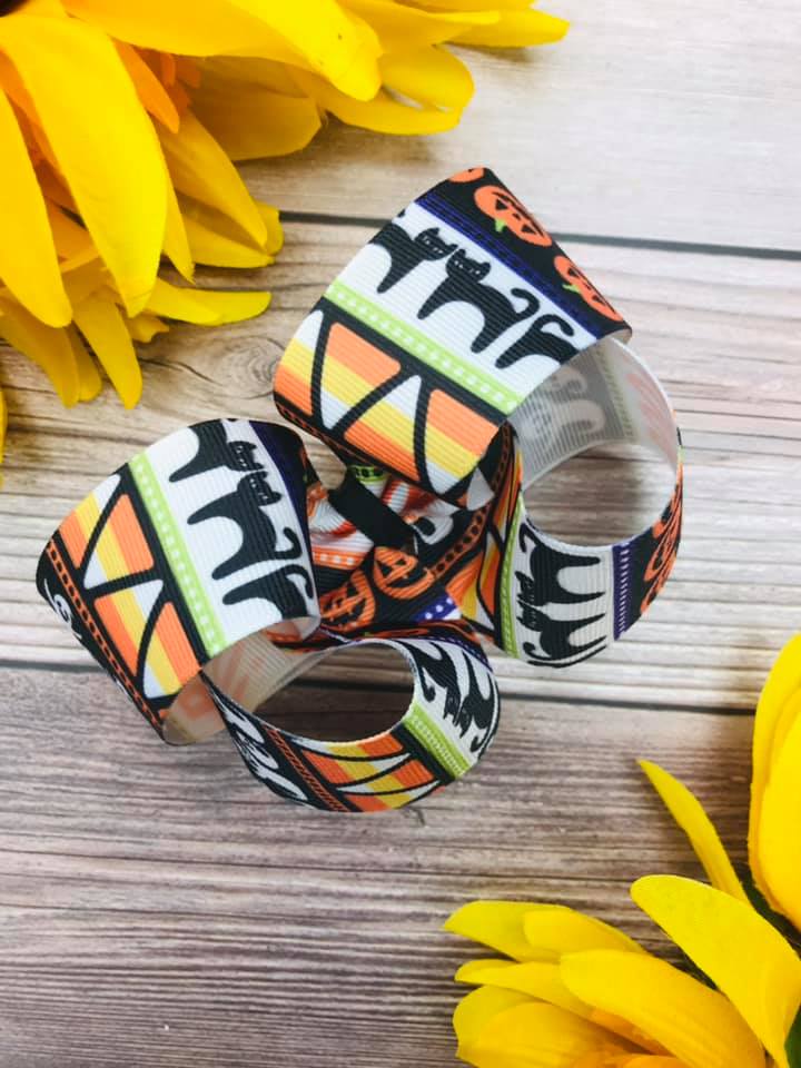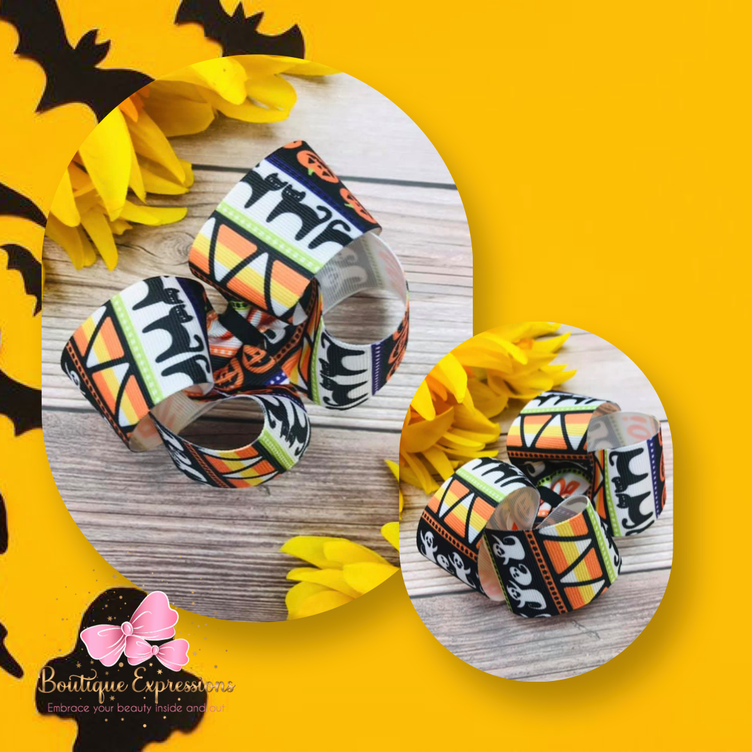 4" twisted boutique bow with a classic Halloween pattern and made with grosgrain ribbon. All bows come on alligator clips with teeth.