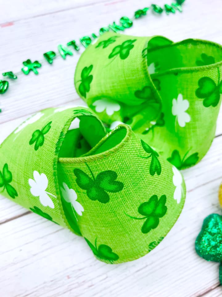Boutique bows made from apple green canvas ribbon with a pattern of green and white shamrocks. This design is available in 2 styles and all bows come on alligator clips with teeth.
