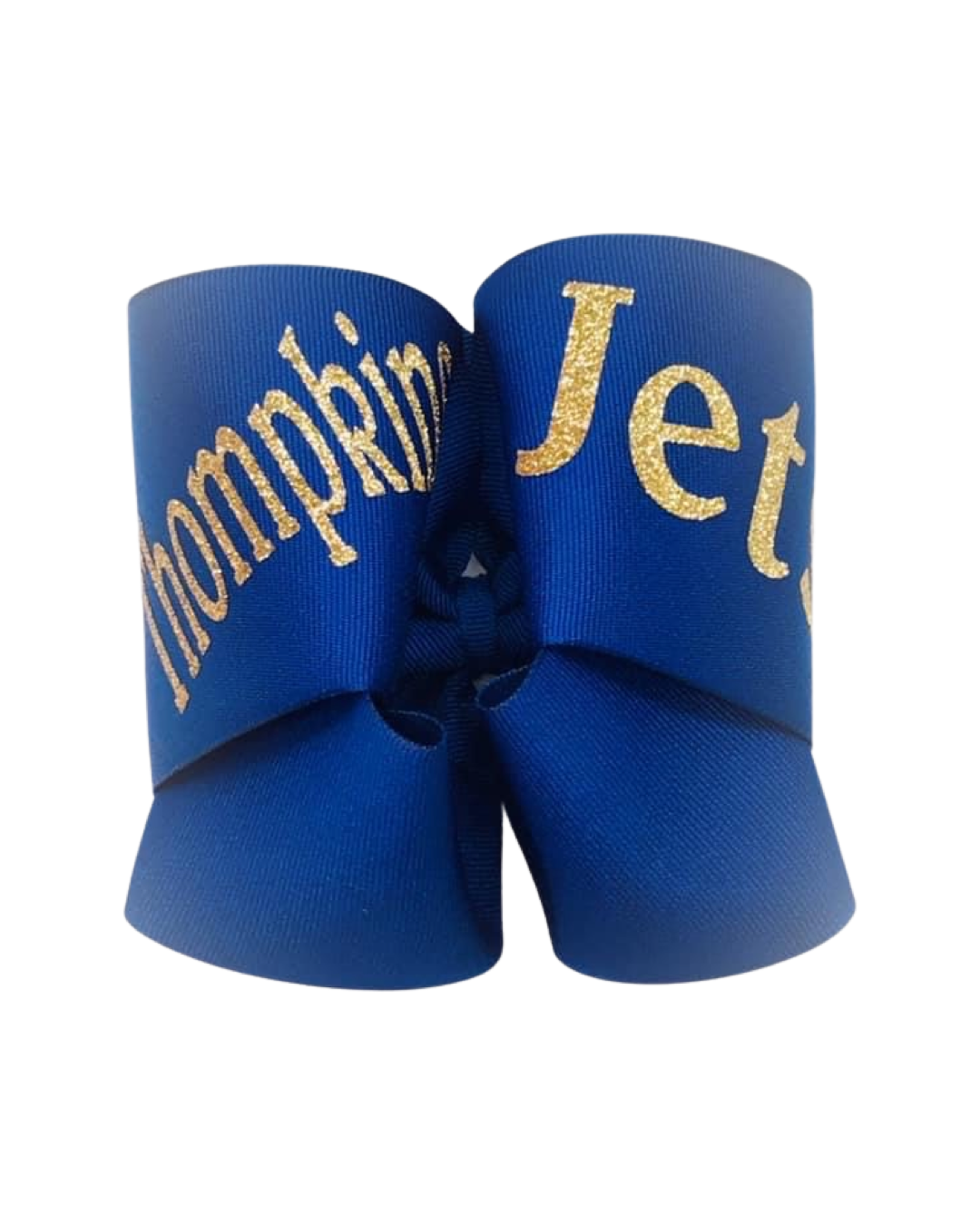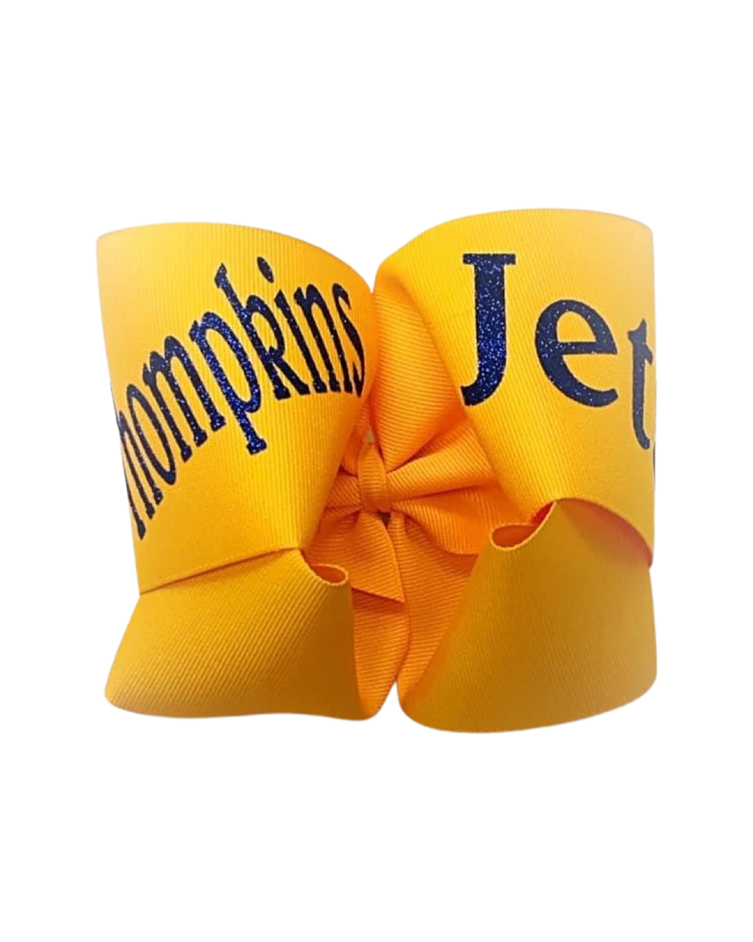 6" Twisted boutique bows are made from 3" wide grosgrain ribbon with school name and mascot written in glitter vinyl all in coordinating school colors. Bows come on 6mm lined alligator clips with teeth.